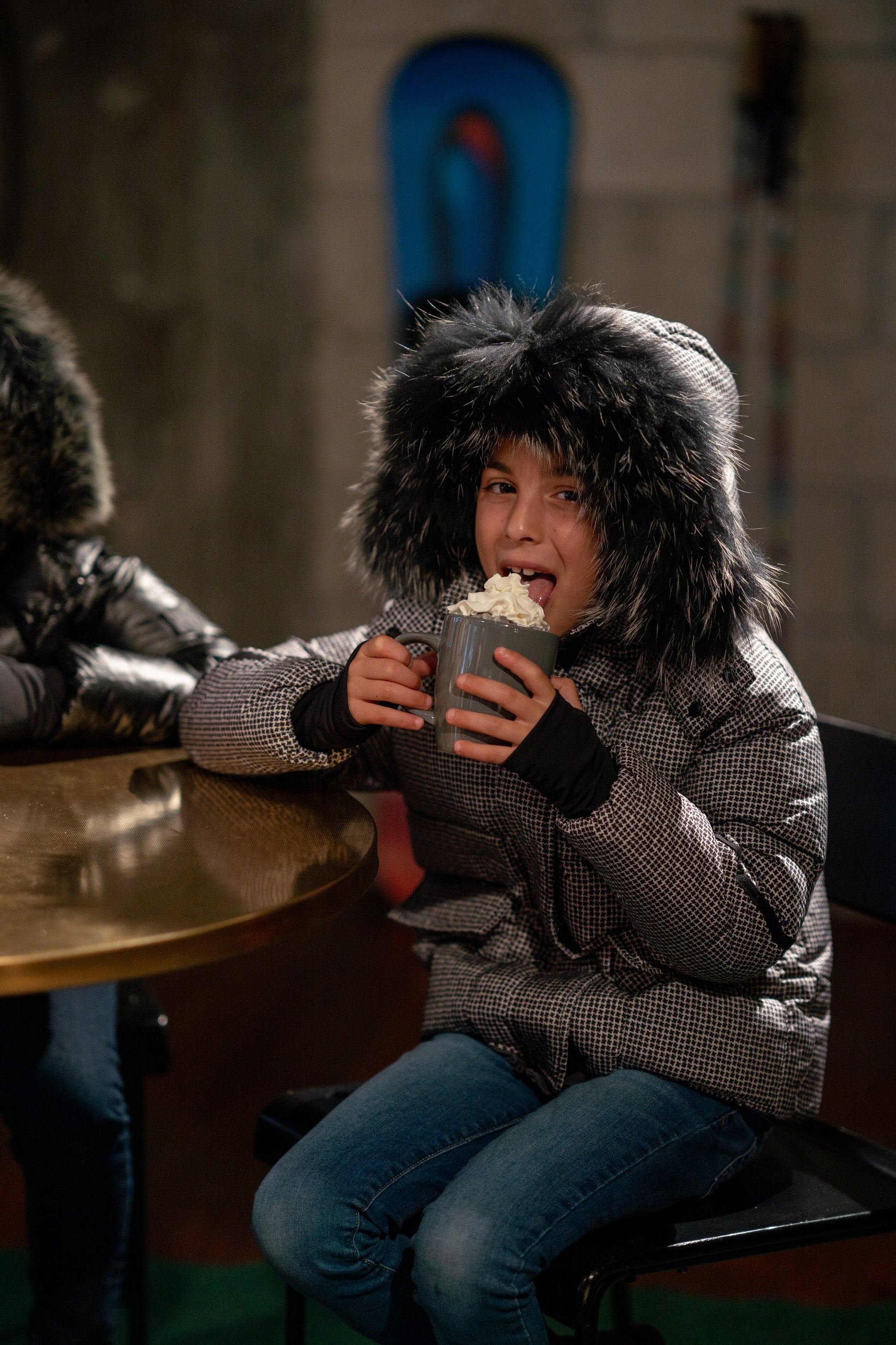 Boasts a luxurious high collar and a hood made from real racoon fur.